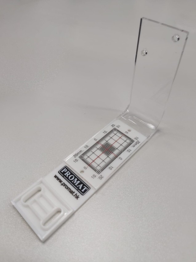 Made of acrylic resin. Used for measurements of vertical and horizontal movements, even simultaneous ones, on angular surface.