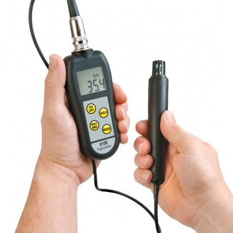 Hygrometers - The 6100 & 6102 therma-hygrometers are easy to use hygrometers, or relative humidity and air temperature measuring meters. The units measure %rh over the range of 0 to 100%rh with a resolution of 0.1 %rh and temperature over the range of -20 to 70°C with a resolution of 0.1°C/°F.