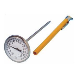 These pocket-sized dial thermometers feature Ø45 mm dial with a pointed Ø4 x 130 mm stainless steel stem and are supplied with a probe cover. Each dial thermometer is available in three scales. A stainless steel mounting clip is available.