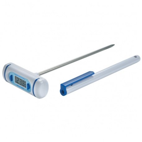 This compact pocket thermometer measures temperature over the range of -49.9 to 149.9°C. The thermometer features a Ø3.5 x 120mm pointed stainless steel probe. The thermometer incorporates a °C/°F switch and a display hold feature. Each unit is supplied with a probe cover that incorporates a pocket clip.