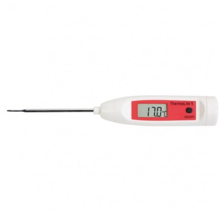 ThermaLite® digital catering thermometers display temperature over the range of -39.9 to 149.9 °C with a 0.1 °C resolution and an accuracy of ±0.5 °C (-39.9 to 124.9 °C). This accuracy is guaranteed for life, due to the instruments advanced electronics. The ThermaLite® 2 incorporates CalCheck and hold functions.