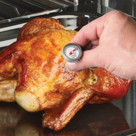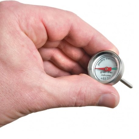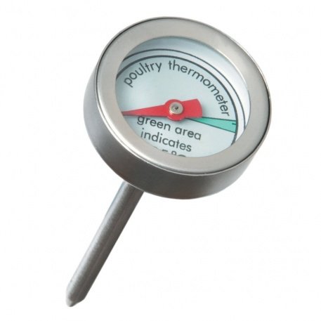 Ensures perfectly cooked poultry everytime. Insert the thermometer into the thickest part of the chicken or turkey (between the leg and breast) before putting into the oven. The poultry will be ready when the dial reaches the green area. The thermometer incorporates a Ø20 mm dial with a 55mm stainless steel probe.