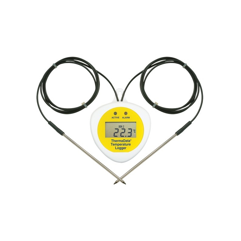 The ThermaData logger TD2F has a clear, easy to read LCD display and comes with two external fixed sensors. The ThermaData logger TD2F data logger is housed in a waterproof, ergonomic case that is designed to meet IP66/67 protection.